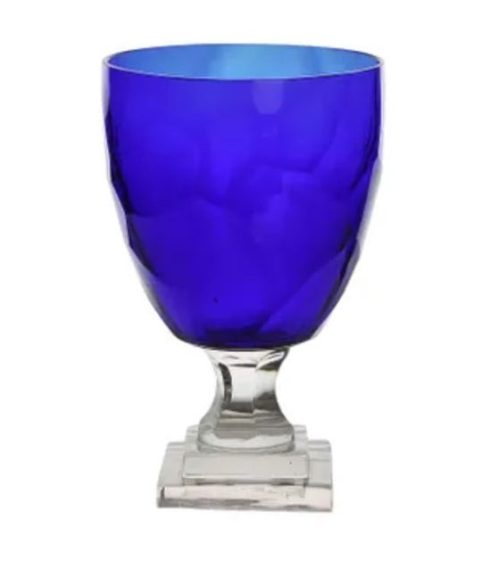 Hand made glass votif in cobalt blue colour on clear glass pedestal