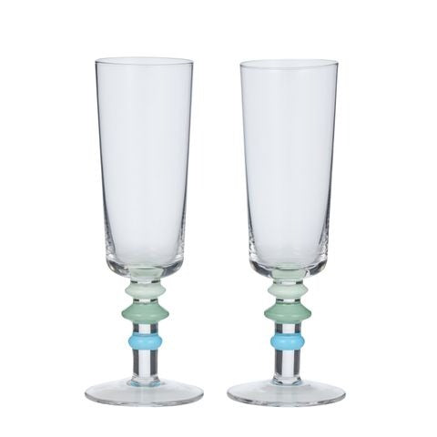 The Tori Flute Glass features a sleek design with a marble stem detail in blue, offering a contemporary touch. Measuring 21cm high, it is ideal for serving cocktails or desserts with style.